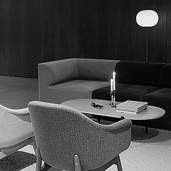 עשוי מחומרים מנוגדים, העיצוב האלגנטי אך הנועז הוא שיעור בעידון ולימוד בגיאומטריה. גוון זכוכית אופלית אליפטי,