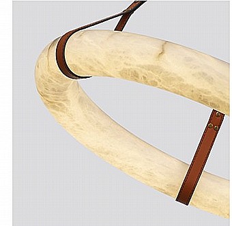גוף: אבן אלבסטר טבעית מספרד + אלומיניום + רצועות עור.