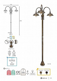 עמוד גינה דקורטיבי לתאורת חוץ. גובה 209 ס"מ עיצוב קלאסי ! 2 בתי מנורה E-27 (נורות ניתנות להחלפה) ... -